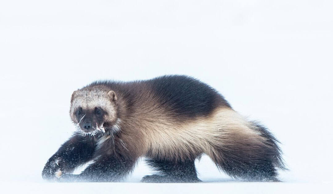 Der Vielfraß hat keinen guten Ruf und ist vor allem bekannt für sein „unangenehmes Wesen“. Dieser hundegroße Marder, der etwa 15 Kilogramm wiegt, hat dolchartige Krallen und Kiefer, die stark genug sind, um einen gefrorenen Elchkadaver auseinander zu reißen. Er frisst alles, einschließlich der Zähne. In einigen Kulturen ist er als „Stinktier-Bär“ bekannt, wegen des abscheulich riechenden Sekrets, mit dem er sein Territorium markiert. Und doch kann er aus bestimmten Blickwinkeln, mit seinen Schneeschuhpfoten und einem Gesicht wie das eines Bärenjungen, kuschelig wirken. Das ist er aber ganz und gar nicht. Ein Vielfraß greift ein zehnmal so großes Tier an, jagt einen Elch oder ein Karibu kilometerweit, bevor er es zu Fall bringt. „Sie sind nur ein bösartiges Stück Muskelmasse“, sagt Qaiyaan Harcharek, ein Inupiat-Jäger in Utqiagvik an der arktischen Küste Alaskas. „Selbst die Bären legen sich nicht mit den kleinen Kerlen an.”
