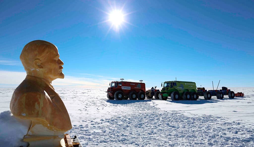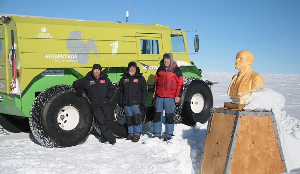 Ein russisches Expeditionsteam ist am 17. Dezember 2018 auf ihrem Weg zum Südpol in der Eiswüste auf ein überraschendes Relikt der Vergangenheit gestossen. In der abgelegensten Region der Antarktis, tauchte vor den Abenteurer plötzlich eine Büste des verblichenen kommunistischen Diktators Lenin auf.