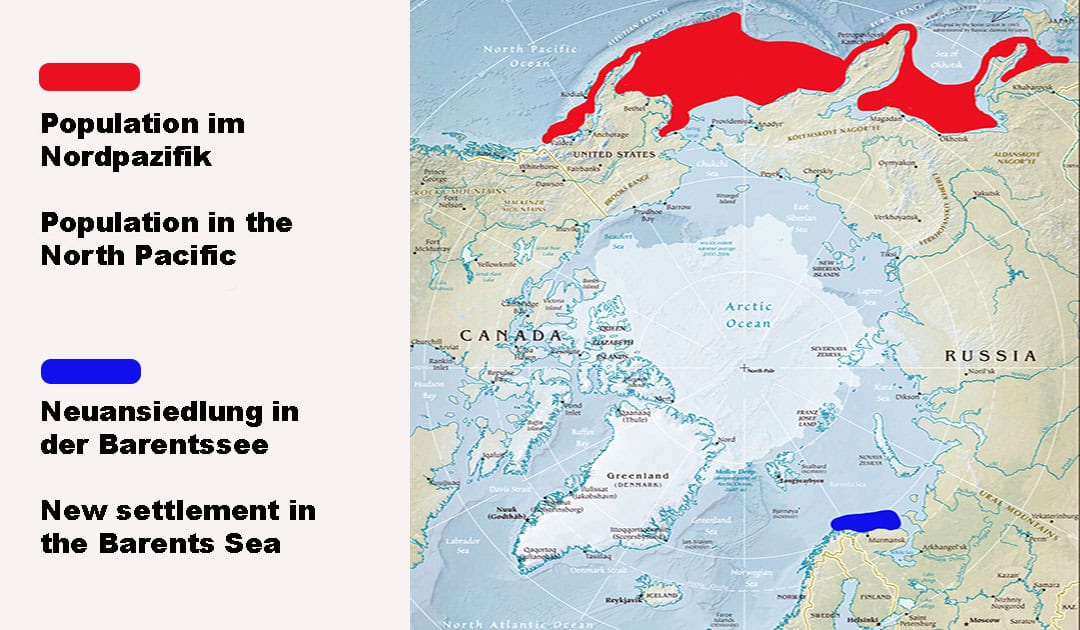 Während die Sowjetunion 1991 von der Bildfläche verschwand, eilte die «Rote Armee» von Sieg zu Sieg. Jedes Weibchen produziert in ihrem Leben 400’000 bis 500’000 Eier, wovon einige Tausend Königskrabben hervorgehen können. Ohne natürlichen Feinde und Futterkonkurrenz breiten sich die Krabben rasant aus. Bereits sind sie an der Westküste Norwegens angelangt und bald werden die Krabben auch vor Spitzbergen anzutreffen sein.