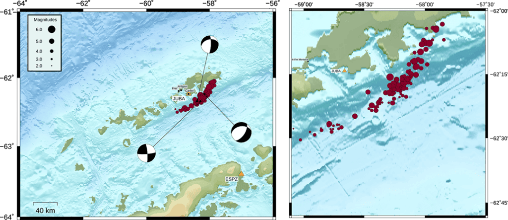 Die Region wurde in den vergangenen Monaten mehrfach von teilweise schweren Erdbeben heimgesucht. Das stärkste bisher registrierte Beben hatte die Stärke 6,0 und war am 6. November registriert worden. Die Region liegt in einer seismisch aktiven Zone, da die Südshetlandinseln, auf denen die meisten antarktischen Stationen liegen, und der antarktische Kontinent durch das Bransfield Basin getrennt werden, das sich immer weiter öffnet und neben Erdbeben auch Vulkanismus verzeichnet. Seit August letzten Jahres haben die Behörden in der Region mehr als 30’000 Erdbeben verzeichnet.