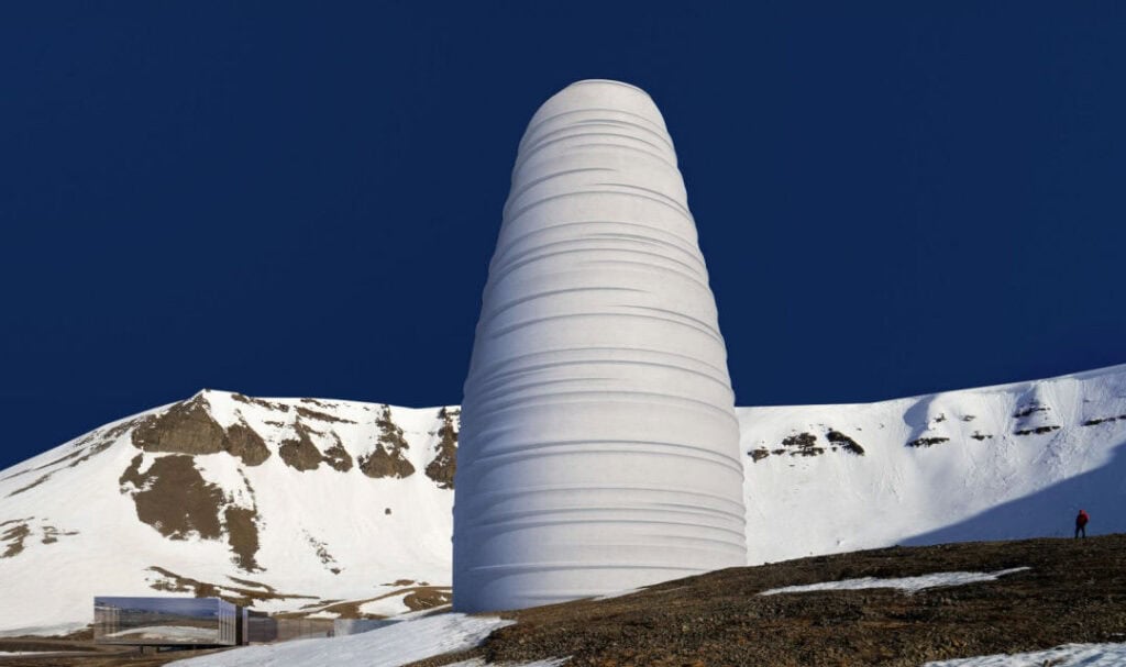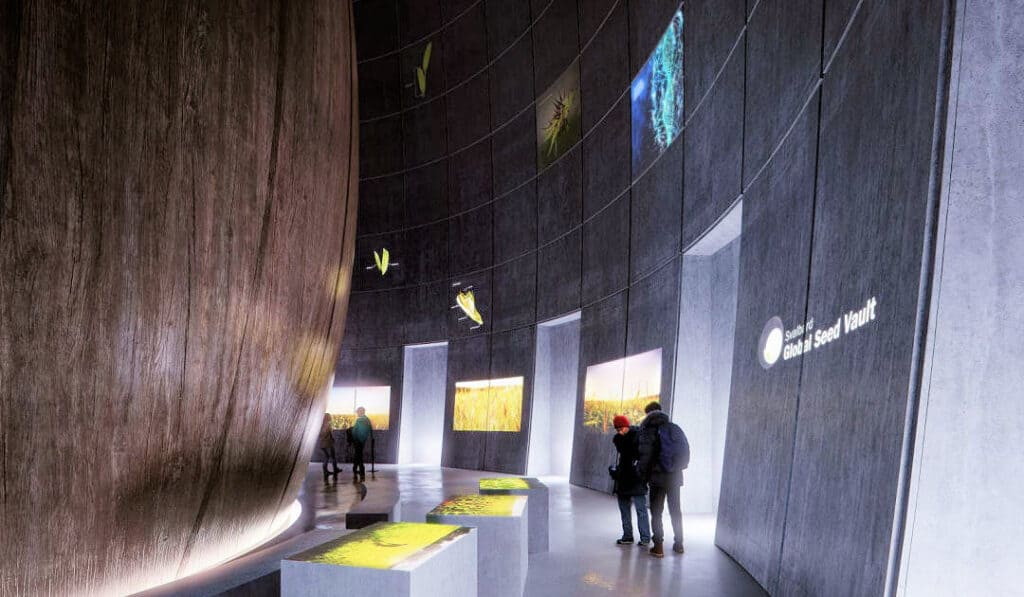 Die Ministerin betonte auch die Bedeutung des «Global Seed Vault» als Touristenattraktion für Longyearbyen. Ihrer Meinung nach ist, das Gewölbe ist von globaler Bedeutung und stösst auf der ganzen Welt auf Interesse, auch bei Touristen, die nach Longyearbyen kommen. Um aber mögliche Störungen durch Besucher, wie es in er Vergangenheit teilweise der Fall war, zu verhindern, soll nun ein Besucherzentrum gebaut werden. Beauftragt wurde die Firma Arctic Memory, die für den Unterhalt und den Betrieb des zweiten, weniger bekannten Lagers auf Svalbard, dem Arctic World Archive, zuständig ist. Arctic Memory hat bereits eine Machbarkeitsstudie bei der renommierten Architekturfirma Snøhetta in Auftrag gegeben. Die Architekten stellten gleichzeitig mit der Eröffnung ihr Projekt vor: einen rund 50 Meter hohen Turm «The Arc», der zwischen den beiden Vaults und nahe beim Schiesstand stehen soll. Im Innern des Turms soll die Verwaltung der Lager, ein Café und Ausstellungen über die Lager Platz finden. Dabei soll die Ausstellung interaktiv sein, ohne Gegenstände, und neben den Vaults auch die Geologie Svalbards erklären. Rune Bjerkestrand von Arctic Memory erklärt: «Dies ist nur eine Konzeptstudie und ein Vorschlag, was gebaut werden kann. Das endgültige Produkt wird sicherlich anders aussehen. Aber zur Weiterführung des Projekts müssen wir wissen, ob Longyearbyen dies auch will.» Die Kosten für das Projekt wurden bisher auf rund € 20 Millionen veranschlagt. Für Ministerin Bollestad ist klar, dass dieses Projekt nicht vom Staat allein getragen werden soll, wie das Pflanzenlager. «Für uns hat die Sicherheit des Saatgutes oberste Priorität», erklärt sie. «Das Wichtigste was wir tun, ist die Welt vor Lebensmittelknappheit zu schützen. Das Samenlager ist für die ganze Welt wichtig. Es ist grösser als wir.»
