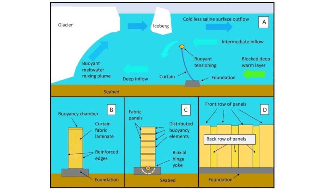 Nach den Vorstellungen des Geophysikers Dr. John Moore und seiner Kollegen von der Universität Lappland soll ein 100 Meter hoher Vorhang warme Unterwasserströmungen ablenken, bevor sie den Fuß von Küstengletschern erreichen, und die Gletscher vor überschüssiger Wärme des Ozeans bewahren. Dadurch könnten sie wachsen und sich fester auf dem Grund der antarktischen Flussmündungen und Fjorde verankern.