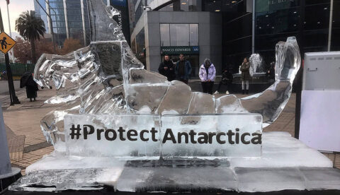 Weren Decker, also known as "Iceman," sculpted a giant krill out of ice to draw attention to global warming and the climate crisis with his melting work of art.