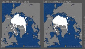 As early as mid-July, the Northern Sea Route was almost ice-free, and on July 20 there was completely open water over the entire sea route.