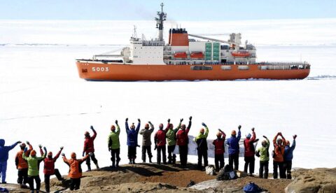 The members of the 63rd research expedition team were able to moor the ship about 350 meters offshore after it was unable to go any further due to thick pack ice.