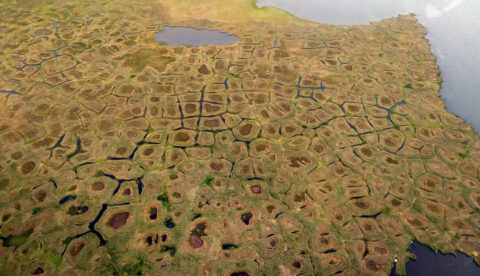 These areas are characterized by thermokarst mounds – a sign of thawing permafrost: where ground ice thaws, parts of the ground sink and leave behind cone-shaped mounds that can reach a height of four to six metres.